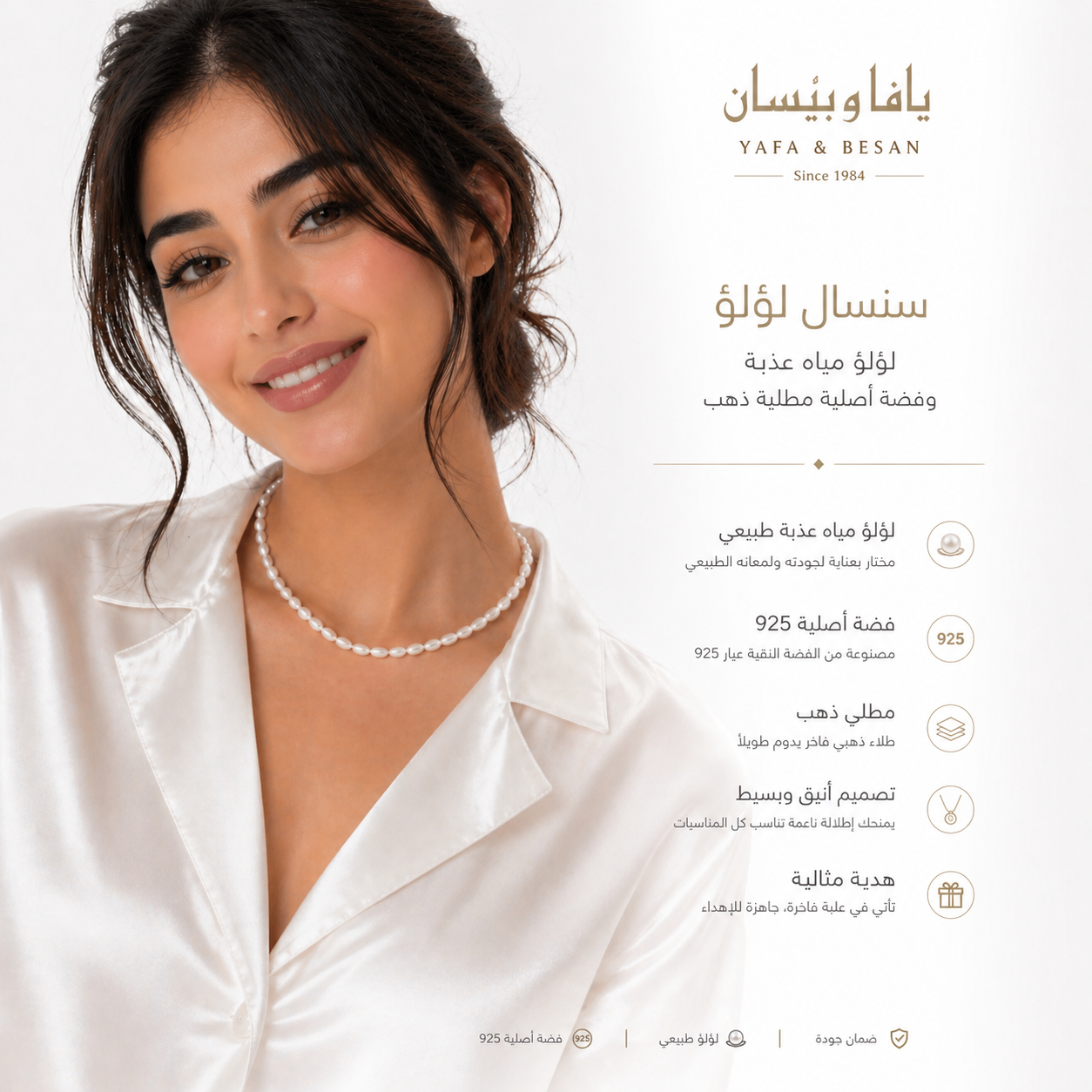 سنسال لؤلؤ مياه عذبة وفضة مطلية ذهب.