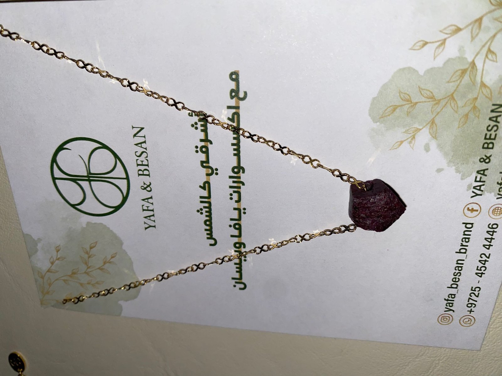 سنسال ياقوت طبيعي خام وستانلس مطلي ذهب.