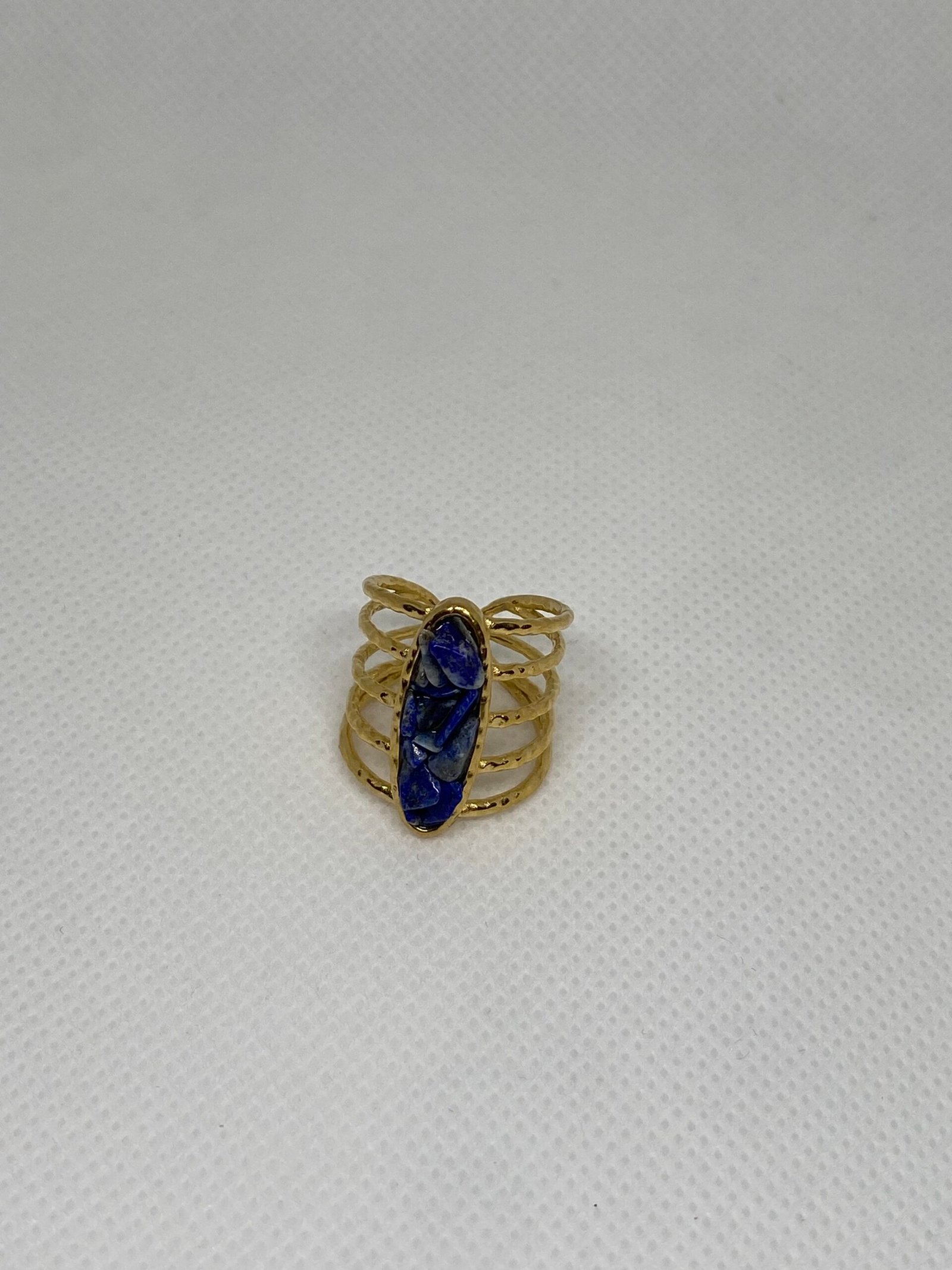 خاتم حجر لابيس لزولي وستانلس مطلي ذهب عيار 18